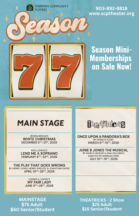 For 76 seasons, Sherman Community Players has been providing the highest quality of theatrical performances for the community's viewing pleasure or active involvement that include a wide variety of comedies, dramas, musicals, and melodramas.